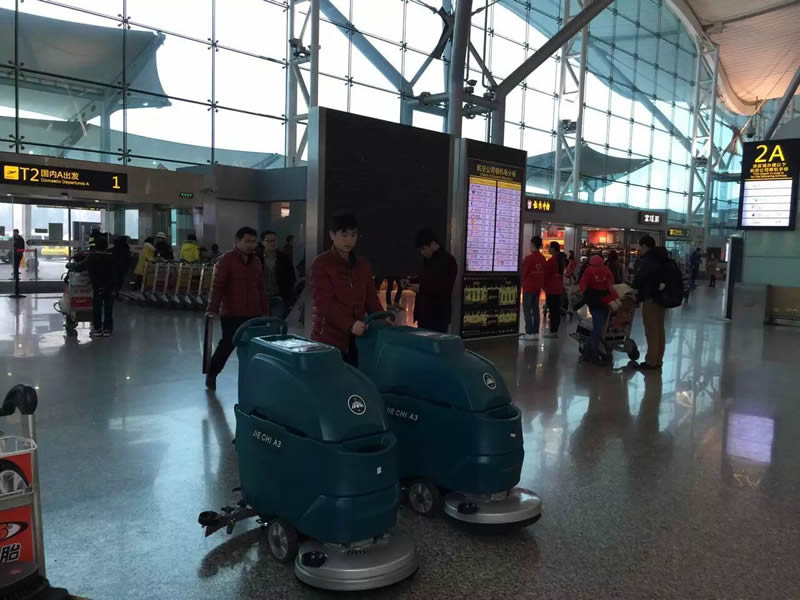 潔馳公司展位手推式洗地機(jī)A3進(jìn)駐重慶江北機(jī)場